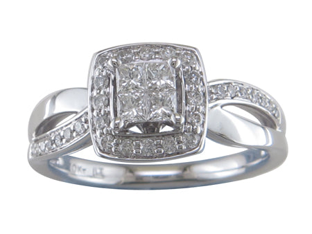 10K White Gold Split Shank Diamond Engagement Ring