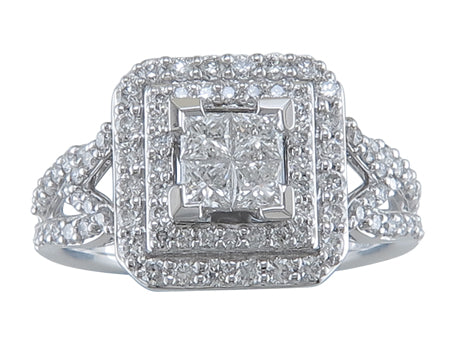 10K White Gold Double Halo Diamond Engagement Ring