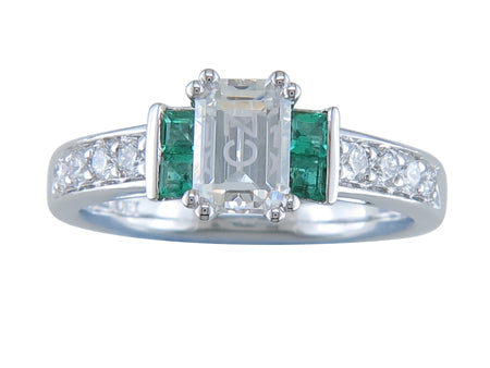 14K White Gold Vintage Diamond & Emerald Semi Mount Engagement Ring