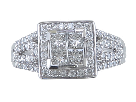 10K White Gold Split Shank Pressure Set Diamond Halo Engagement Ring