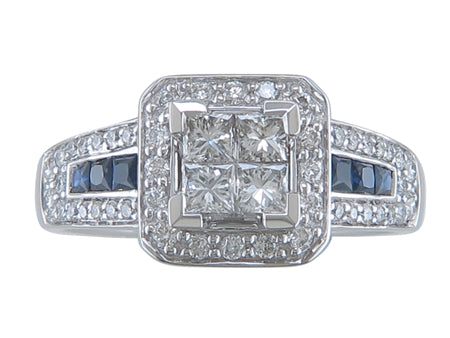 10K White Gold Sapphire & Diamond Halo Engagement Ring