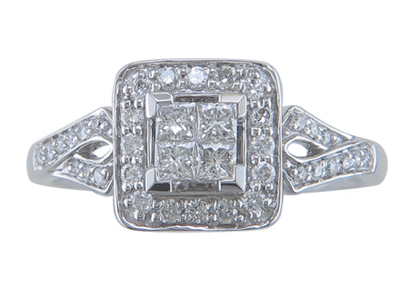 10K White Gold Split Shank Pressure Set Diamond Halo Engagement Ring