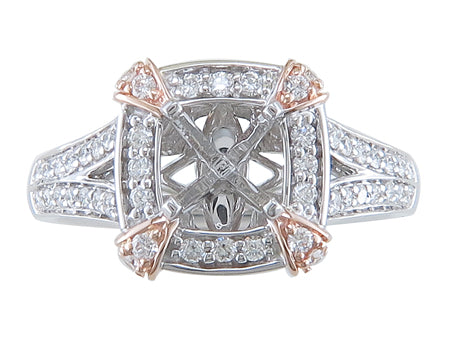14K White & Rose Gold Vintage Split Shank Diamond Halo Semi Mount Engagement Ring
