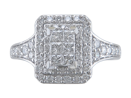10K White Gold Double Halo Diamond Engagement Ring