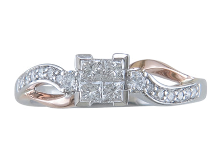 10K Two Tone White & Rose Gold Split Shank Diamond Engagement Ring