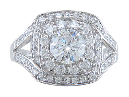 14K White Gold Diamond Double Halo Semi Mount Engagement Ring