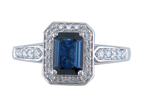 14K White Gold Vintage Sapphire & Diamond Halo Engagement Ring