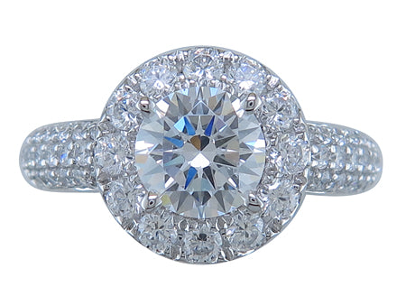 14K White Gold Pave Diamond Halo Semi Mount Engagement Ring