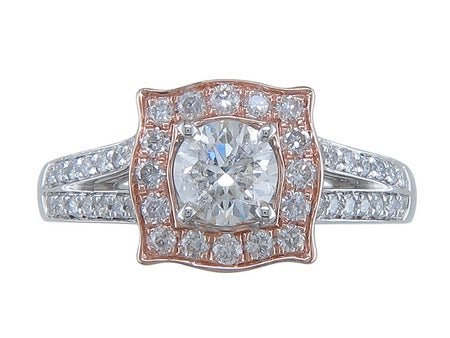 14K White & Rose Gold Split Shank Floral Diamond Halo Semi Mount Engagement Ring