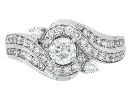 14K White Gold Bypass Diamond Halo Engagement Ring