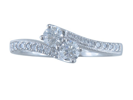 14K White Gold Two Stone Diamond Engagement Ring
