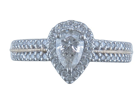 14K White & Yellow Gold Milgrain Diamond Halo Engagement Ring