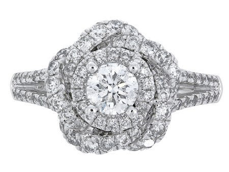 14K White Gold Split Shank Diamond Floral Double Halo Semi Mount Engagement Ring