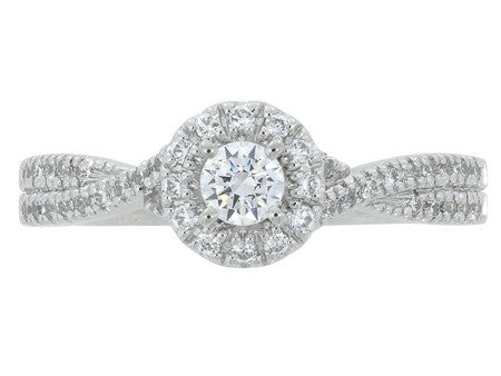 10K White Gold Petite Twist Diamond Halo Engagement Ring