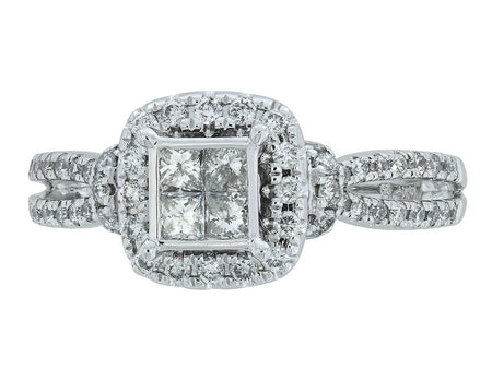 14K White Gold Split Shank Halo Diamond Engagement Ring