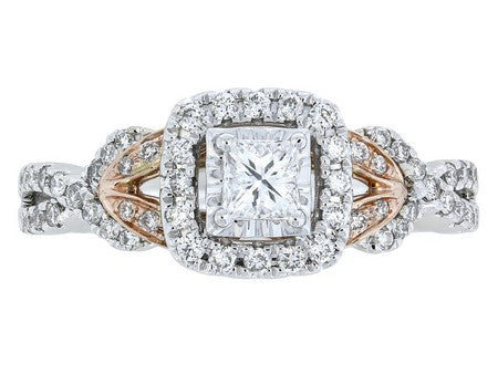 14K White & Rose Gold Miracle Plate Diamond Halo Engagement Ring