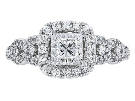 14K White Miracle Plate Diamond Halo Engagement Ring