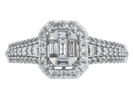 14K White Gold Pressure Set Diamond Halo Engagement Ring