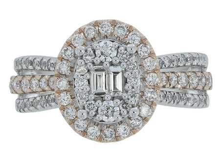 14K White & Rose Gold Diamond Cluster Engagement Ring