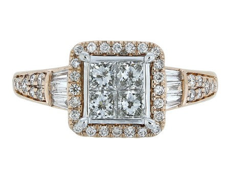 14K Two Tone White & Rose Gold Diamond Halo Engagement Ring