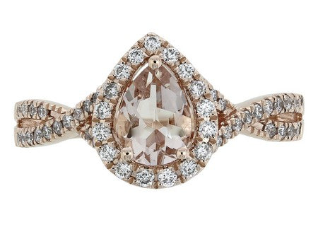 10K Rose Gold Morganite & Diamond Halo Engagement Ring