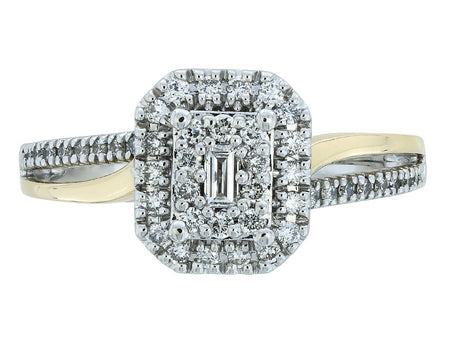 14K Two Tone Yellow & White Gold Diamond Halo Engagement Ring