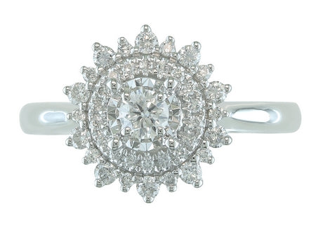 14K White Gold Diamond Starburst Halo Engagement Ring