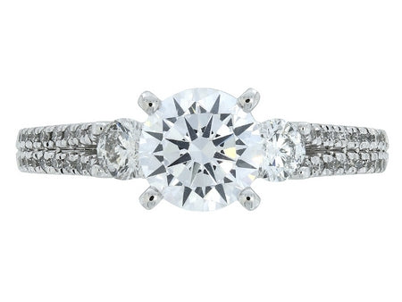 14K White Gold Three Stone Diamond Semi Mount Engagement Ring
