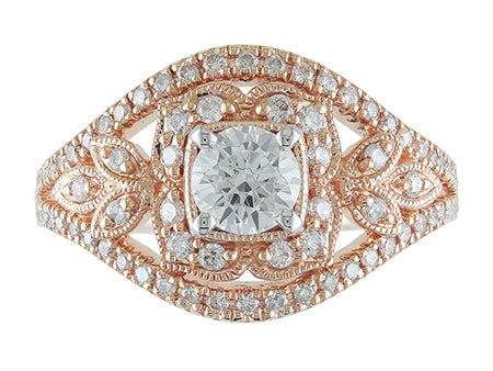 14K Rose & White Gold Vintage Milgrain Floral Diamond Engagement Ring