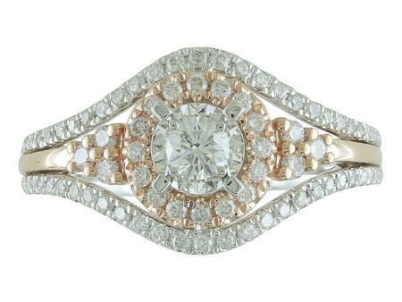 14K White & Rose Gold Split Shank Miracle Plate Diamond Halo Engagement Ring