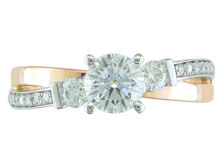 14K Two Tone White & Rose Gold Three Stone Diamond Bypass Engagement Ring