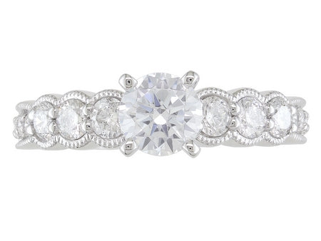 14K White Gold Milgrain Scalloped Diamond Semi Mount Engagement Ring
