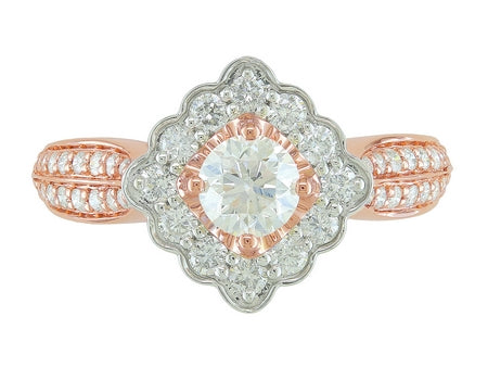 14K Rose & White Gold Vintage Miracle Plate Diamond Halo Engagement Ring