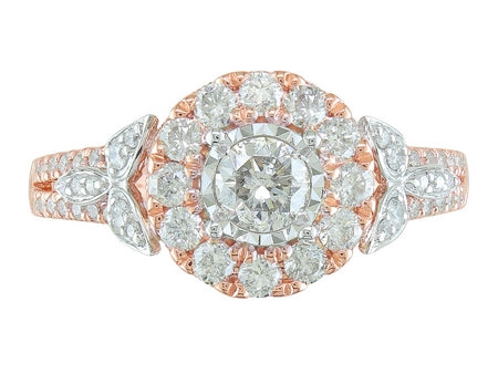 14K Rose & White Gold Miracle Plate Diamond Halo Engagement Ring