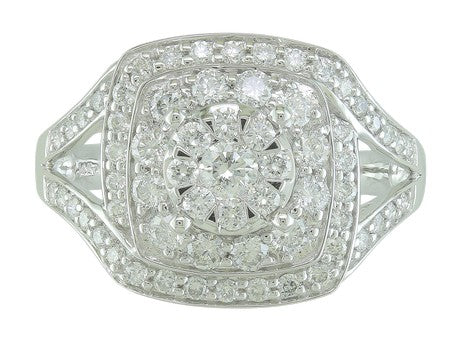 14K White Gold Split Shank Halo Diamond Engagement Ring