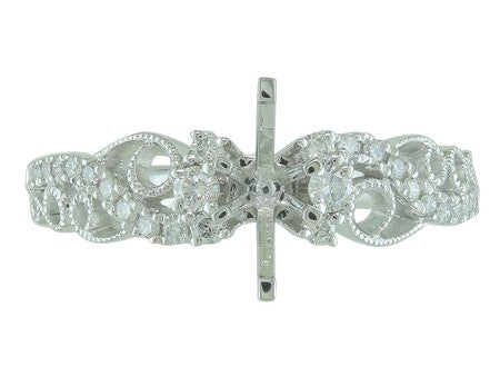 14K White Gold Vintage Milgrain Diamond Semi Mount Engagement Ring