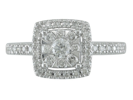 18K White Gold Diamond Halo Engagement Ring