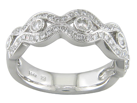 14K White Gold Milgrain Twist Diamond Band