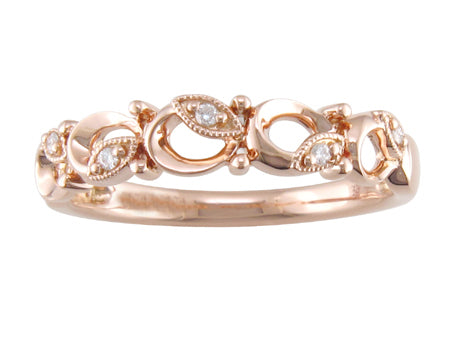18K Rose Gold Milgrain Scalloped Diamond Fashion Ring