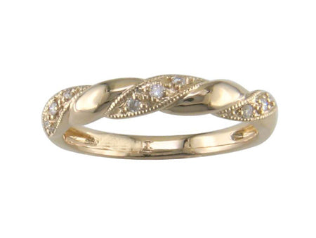 10K Yellow Gold Milgrain Twist Diamond Stackable Wedding Band
