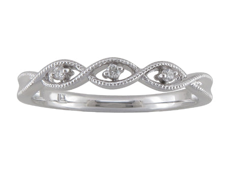 10K White Gold Milgrain Three Stone Twist Diamond Wedding Band