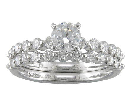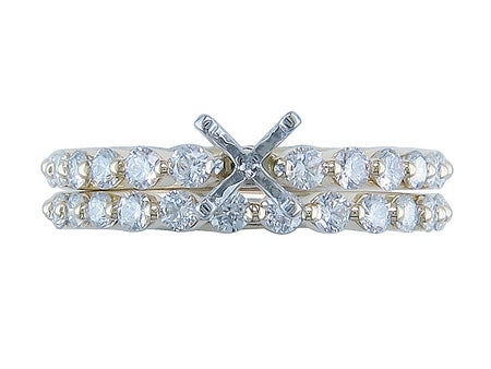 14K Yellow & White Gold Shared Prong Diamond Semi Mount Engagement & Wedding Band Set