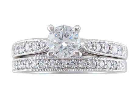 14K White Gold Diamond Semi Mount Engagement & Wedding Band Set
