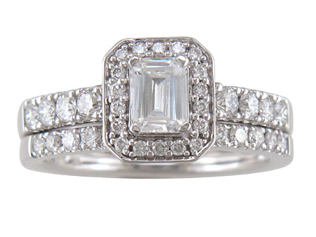 14K White Gold Vintage Diamond Halo Engagement & Wedding Band Set