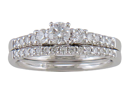14K White Gold Diamond Semi Mount Engagement & Wedding Band Set