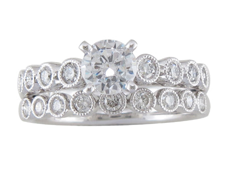 14K White Gold Milgrain Bezel Set Diamond Semi Mount Engagement & Wedding Band Set
