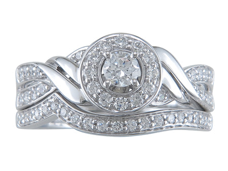 10K White Gold Bypass Diamond Halo Engagement & Wedding Band Set