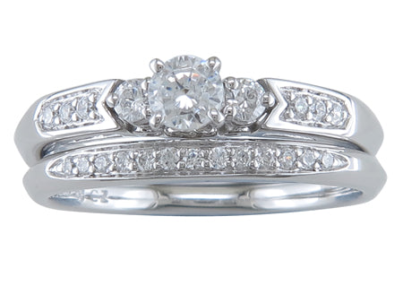 14K White Gold Diamond Engagement & Wedding Band Set