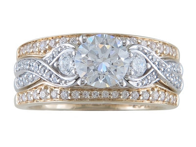 14K White & Yellow Gold Infinity Diamond Semi Mount Engagement & Double Wedding Band Set