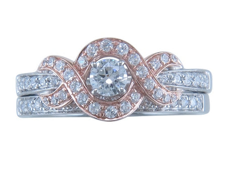14K White & Rose Gold Infinity Diamond Semi Mount Engagement & Double Wedding Band Set